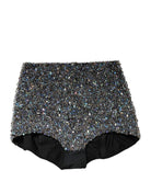 hot pants feature intricate multicolor embellishments that showcase exquisite craftsmanship. The high-waist design enhances the figure, creating a bold and glamorous statement piece.