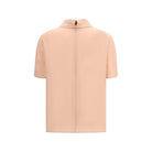 The silk Blouse by Valentino embodies understated, refined elegance. Crafted from fluid silk, it features a straight cut that drapes naturally over the silhouette. A high neckline with a folded detail adds a sophisticated touch, while a hook-and-zip closure at the back ensures a clean, polished finish.
