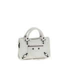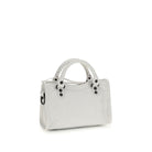 The lambskin Le City mini Handbag by Balenciaga, made of wrinkled-effect Arena Leather, adjustable and removable shoulder strap, two hand-woven leather handles, brass hardware, knotted leather zipper and zipper puller closure, knotted leather front zipper pocket and zipper puller, interior zippered pocket, cotton canvas lining.