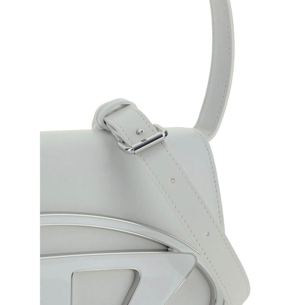 The 1DR Shoulder Bag by Diesel is made of mirrored leather with a flat shoulder strap. It has a front magnetic closure and the brand’s embossed Oval-D logo. Inside is a welt pocket to keep items in order. A modern and practical design.