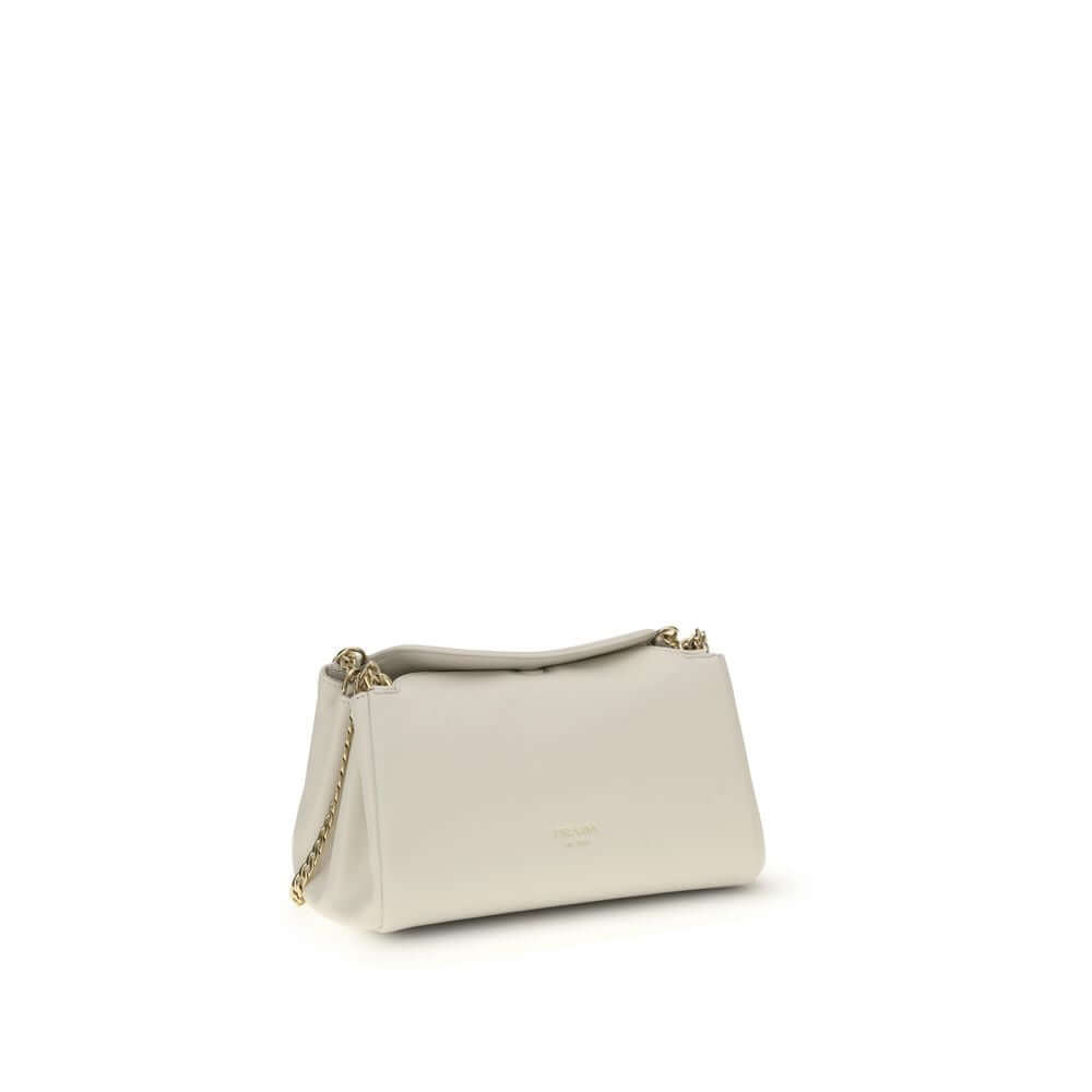 The leather Shoulder Bag by Prada combines classic elegance with iconic details. Featuring a flap closure and embellished with the golden logo on the front, it stands out for its refined style. The chain handle adds a modern touch, making it ideal for completing both formal and casual looks with class.