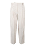 Elevate your wardrobe with the epitome of Italian elegance. These pristine BRUNELLO CUCINELLI Snow White Women’s Pants are the perfect blend of sophistication and modern style. Tailored masterfully from a luxurious blend, their impeccable cut offers both comfort and a seamless fit. Whether for a decisive business meeting or a chic weekend outing, they promise to be a versatile staple in your collection.