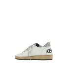 Calfskin Ball Star Sneakers by Golden Goose, contrasting lace-up front fastening, an iconic star on contrasting side panel, a round toe, a flat sole, a brand logo press-stamped on the outer side panel, a contrasting embroidered brand monogram label on the front tongue, and metallic mirrored leather inserts.