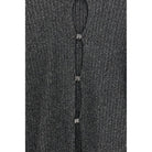 The lurex Cardigan by Amiri is a close-fitting garment with sophisticated lines, made from a ribbed fabric that enhances the figure. The front closure with buttons shaped like the brand’s logo creates a “now you see it, now you don’t” effect, adding an intriguing and sensual touch. The lurex adds shine and brightness to the look, making this cardigan ideal for those seeking a balance between understated elegance and modernity.