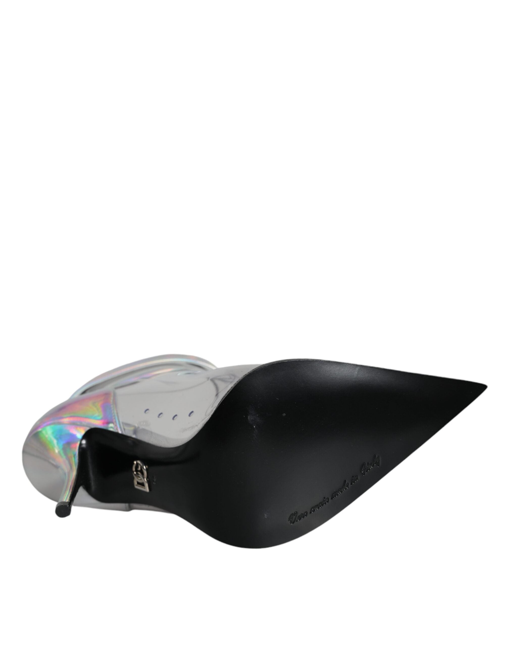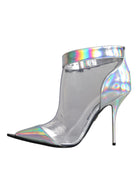 Silver Iridescent PVC Pointed Short Boots Shoes