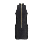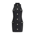 Balmain’s Baroque short Dress combines elegance and character in a refined design. Made of bouclé fabric with a rich baroque pattern, it features an American collar that enhances the silhouette and a back zipper closure. Gold embossed buttons on the front add an iconic and luxurious touch typical of Balmain style.