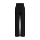 The Carbone Pants by Max Mara reinterpret masculine elegance with the Maison’s signature refinement. Crafted from light drap of pure zibeline camel, they feature a straight leg cut with front pleats that highlight the sartorial construction. A high waistband with zip fly and hook closure ensures a precise fit, while the slanted side pockets and back welt pockets underline the classic design. Finished with a pressed crease and belt loops, this versatile piece embodies timeless sophistication for the modern wardrobe.