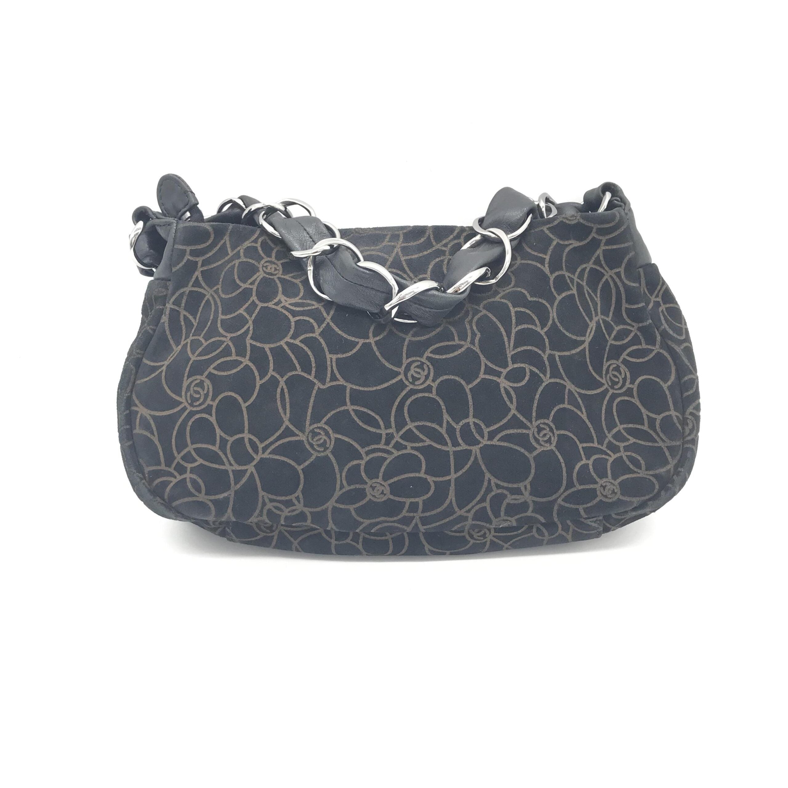 Camellia Chain Black Suede Shoulder Bag With Logo