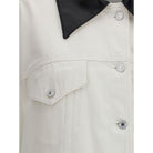 The Denim Jacket by Givenchy presents a classic leather collar and an oversized, contemporary silhouette. On the back, the denim appliqué with the logo adds an iconic detail. The front button closure with engraved Givenchy buttons, buttoned cuffs, and two chest flap pockets complete the design with a distinctive, urban touch.
