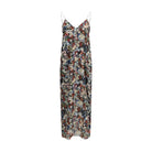 The Taja maxi dress by Khaite is crafted from multicolored silk chiffon with a fluid, ethereal drape. Inspired by lingerie, it features a camisole-style bodice with delicate rouleau straps, bust darts, and a low back for graceful movement. Designed with a double-layered chiffon construction and a slit hem, the dress slips on effortlessly, embodying understated elegance.