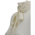 The Khaite Tash Silk Shirt is a luxurious piece that combines elegance and sophistication. The concealed button front closure gives it a clean and sophisticated look, while the adjustable button cuffs allow you to customize the fit to suit your style. The semi-sheer design adds a sensual and delicate touch, without compromising the class of the piece. The self-tie sash collar offers a customization option that allows you to play with the style, creating an elegant and versatile effect.