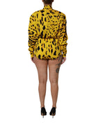Yellow Leopard Long Sleeves Jumpsuit Dress