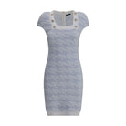 Balmain’s Stretch midi Dress combines style and comfort with a fitted, modern silhouette. It features a ribbed square neckline embellished with embossed button details, short sleeves, and a back zipper closure for an elegant and refined look perfect for any occasion.