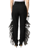 Black High Waist Tulle Wool Trouser Pants