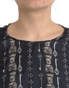Black Key Castle Print Silk Blouse T-shirt