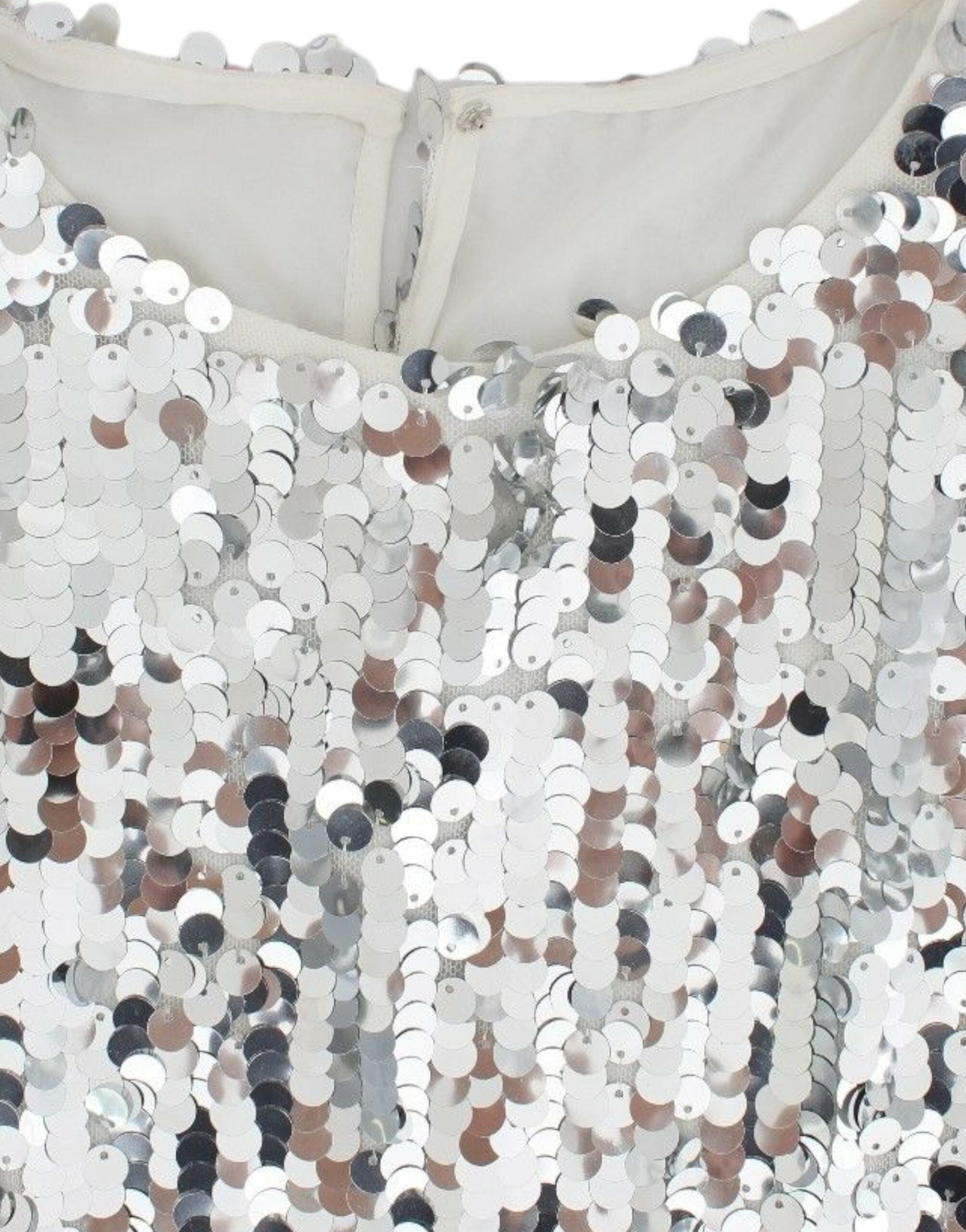 Gorgeous brand new with tags, 100% Authentic Dolce & Gabbana white with silver sequined party evening blouse top. This item comes from the exclusive MainLine Dolce & Gabbana Collection.
