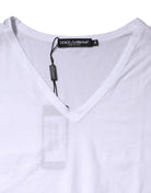 White Cotton Short Sleeves V-Neck Top T-shirt