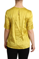 Gorgeous brand new with tags, 100% Authentic Dolce & Gabbana women silk t-shirt features a round neck, short sleeve and back closure with fastening buttons.