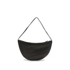 The Izzy Small Shoulder Bag by The Row is made of smooth leather and features the logo embossed on the front. It features a tonal leather flat handle and top zipper closure, combining minimalist elegance and functionality.