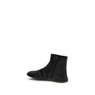 The leather ankle Boots lined with soft shearling, showcasing the refined, timeless aesthetic of The Row. The smooth black leather shapes a clean, minimalist silhouette, while the plush shearling interior provides warmth and comfort. A versatile and luxurious piece, designed to elevate both everyday outfits and more polished ensembles with understated elegance.