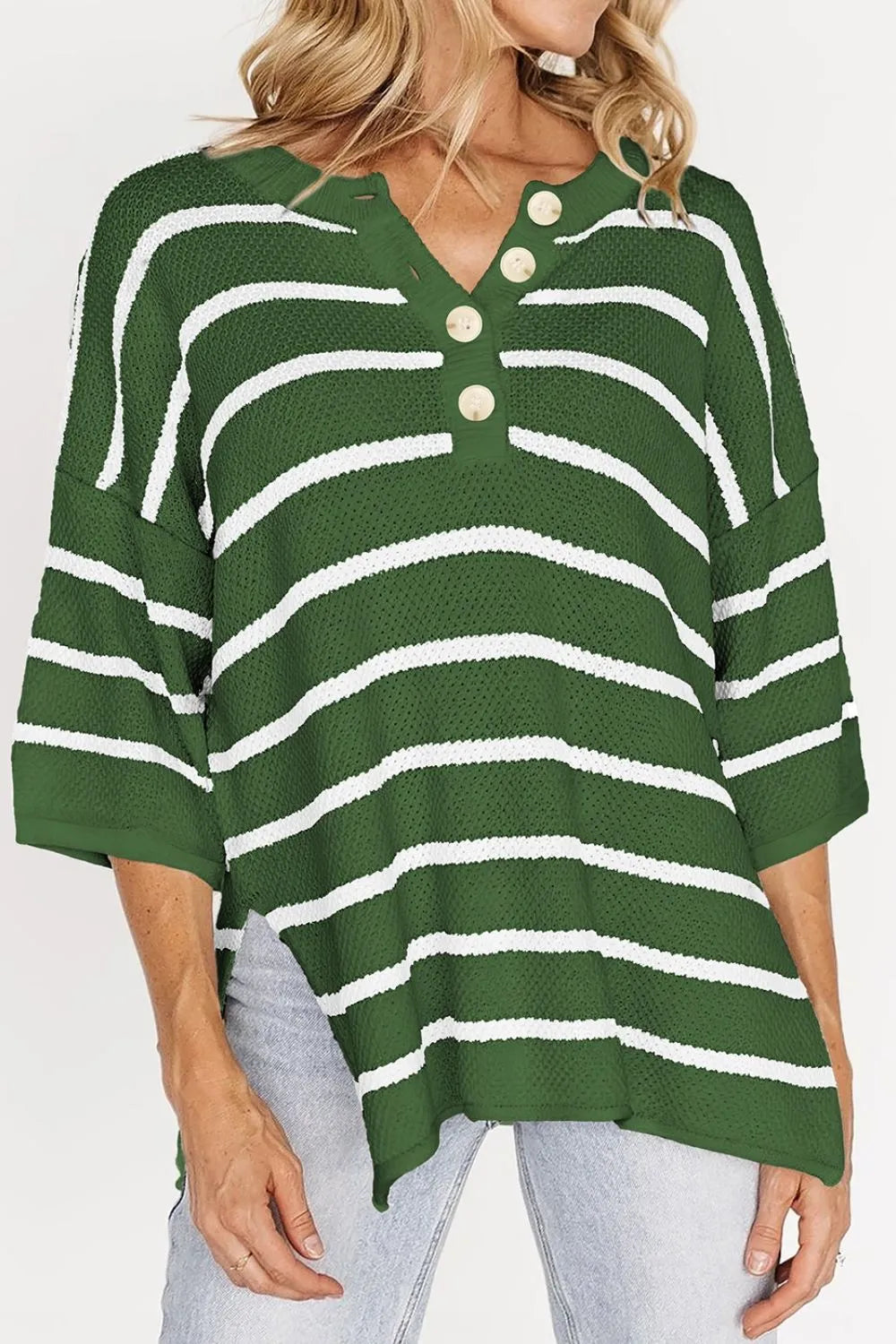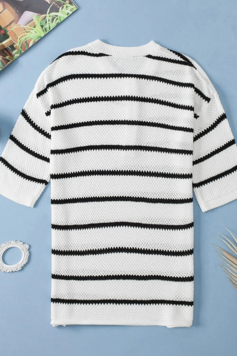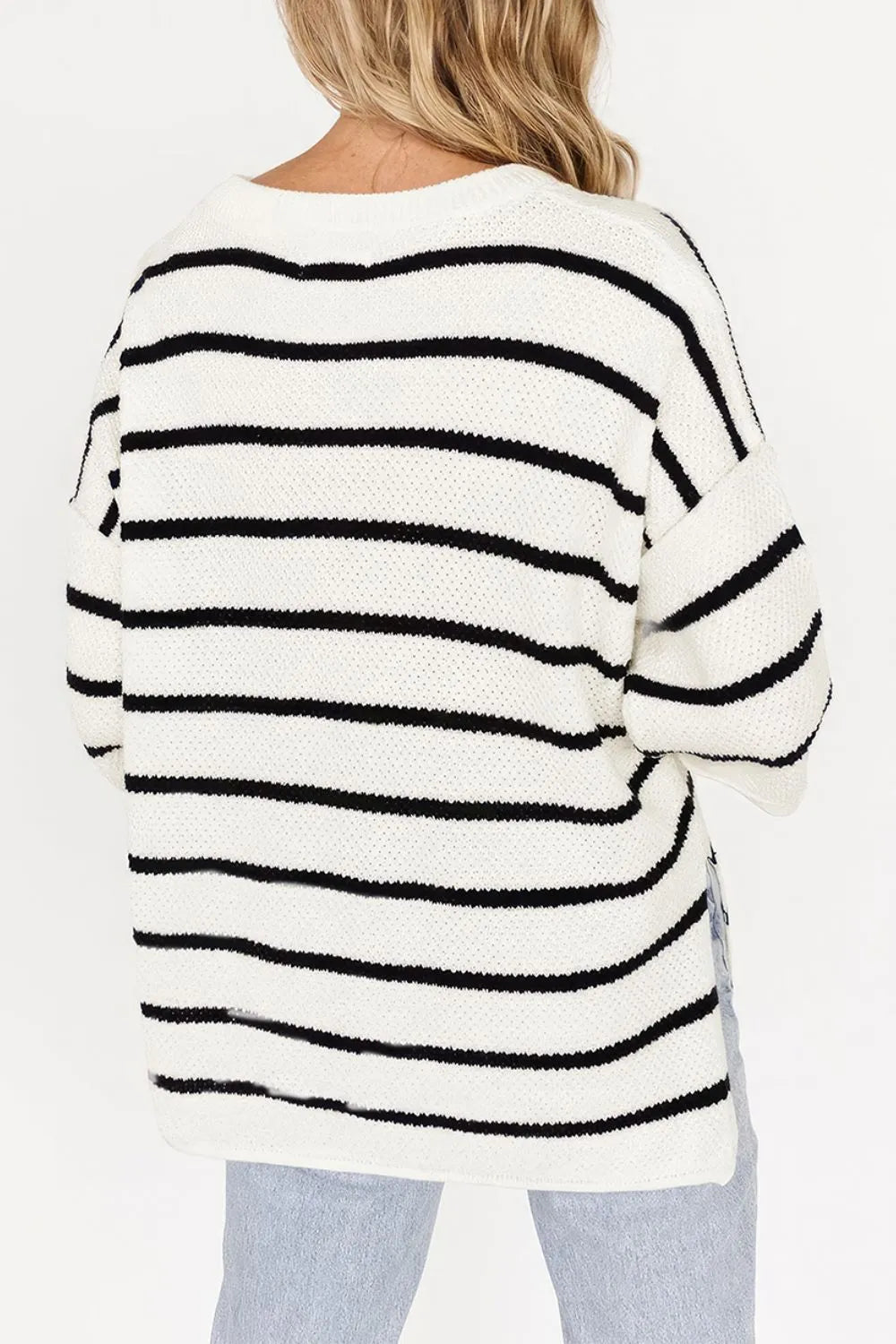 Stripe Drop Shoulder Side Slit Knit Top