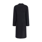 This classic Wool Coat features decorative horn buttons inspired by double-breasted styling. It has a central closure with fabric-covered buttons, horn details on the front and cuffs, a welt chest pocket, and side pockets. An timeless and refined piece, perfect for transitional seasons