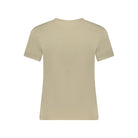 Elevate your wardrobe with the effortlessly chic Guess Jeans tee, a perfect blend of comfort and signature style. This beige t-shirt features a flattering wide neck and is adorned with a standout logo application, ensuring you shine in casual luxury. Crafted from a sumptuous mix of organic cotton and a hint of spandex, this piece offers both sustainability and a touch of stretch for an ideal fit. Embrace the bold and trendy spirit of Guess Jeans with this stylish staple.