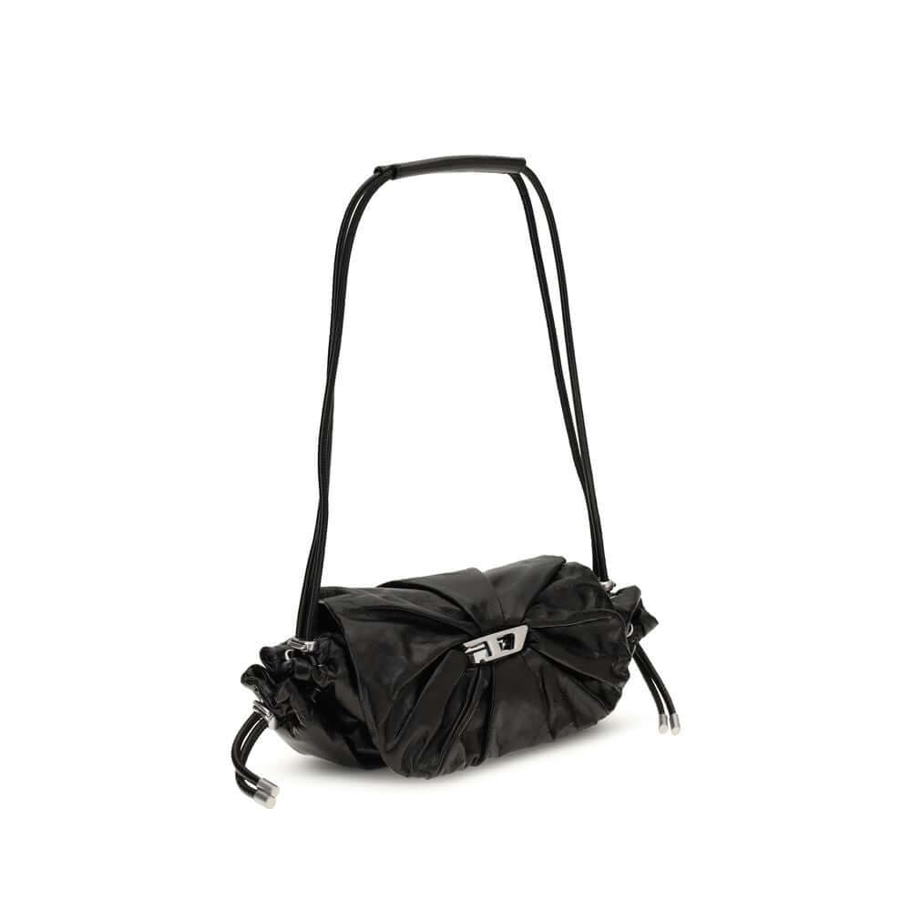 The Scrunch-D Shoulder Bag by Diesel is a modern and practical accessory. Featuring two round handles, it offers a front closure with a magnetic flap for easy access to its contents. The brand’s iconic appliquéd logo on the front adds a distinctive touch, while the interior zippered pocket offers more organization. Perfect for those seeking a functional and trendy design, this bag combines style and practicality in a stylish way.