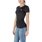 The Guess SS CN MINI TRIANGLE W2YI44 J1314 women’s short-sleeved t-shirt is the perfect choice for those seeking a clean yet distinctive style. Crafted from 95% cotton and 5% elastane/lycra, it offers comfortable wear and gentle stretch that flatters the feminine silhouette. The iconic mini Guess triangle logo embroidered on the chest adds a touch of subtle elegance. With its classic cut and soft fabric, this t-shirt is ideal for both casual occasions and more refined outfits. A versatile must-have for the spring-summer season, it pairs effortlessly with sporty pants or jeans for a timeless look.