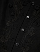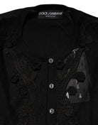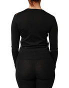 black sheer cardigan. Crafted from lightweight, semi-transparent fabric, it offers an elegant, delicate look while maintaining everyday versatility. The button-down front adds classic structure, making it perfect for layering over camisoles, dresses, or tailored ensembles. A sophisticated piece that blends modern femininity with luxurious Italian craftsmanship.