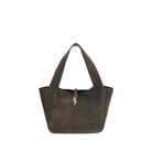 The Le 5 à 7 Bea Tote Bag by Saint Laurent, made of suede leather, is an elegant versatile accessory with a refined design. The closure features a strap with a Cassandre logo plaque and a snap button, giving it a distinctive and sophisticated touch. The two top handles allow it to be carried comfortably, while the interior, with a single compartment, offers ample space for essentials.