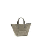 The suede leather Shoulder Bag by Brunello Cucinelli combines craftsmanship and sophistication. Featuring two top handles and an adjustable and removable flat shoulder strap, it offers versatility and comfort. The paneled design enhances the elegant structure, while the iconic monogram on the front panel adds a distinctive touch. The interior magnetic button closure ensures practicality, and the iconic shiny jewels on the side panels lend brightness and sophistication. The single interior compartment ensures space and functionality, perfect for discreet and timeless elegance.