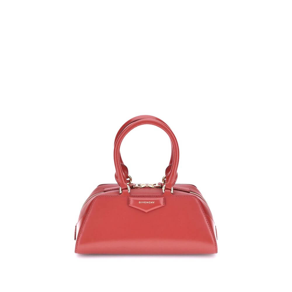 Givenchy’s Antigona East West mini Handbag combines elegance and practicality in a compact size. Equipped with two articulated leather handles with four D-rings to attach the adjustable and removable shoulder strap, it is closed by a zipper that protects the single main compartment. A pentagonal signature embossed appliqué stands out on the front, while metallic details with a gold finish complete the design with refined brilliance.