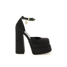 – Composition: 100% Silk – Insole: Leather – Sole: Leather – Ankle side buckle fastening – Square toe – Crystal embellishments – Medusa charm – Heel 16 cm – Gender: WOMEN –