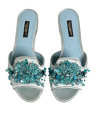 Gorgeous brand new with tags, 100% Authentic Dolce & Gabbana sandals features a striking combination of silver and blue leather, beautifully accented with intricate bead embellishments that reflect the brand’s signature opulent style. The open-toe slide design offers effortless elegance, making them both chic and comfortable for warm-weather wear.