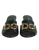 slides showcase the brand’s luxurious flair, crafted in vibrant green material with the signature DG Amore sculpted heel. Designed with an open-toe silhouette and sleek slip-on style, they exude glamor and comfort—perfect for adding a bold, elegant touch to any ensemble.