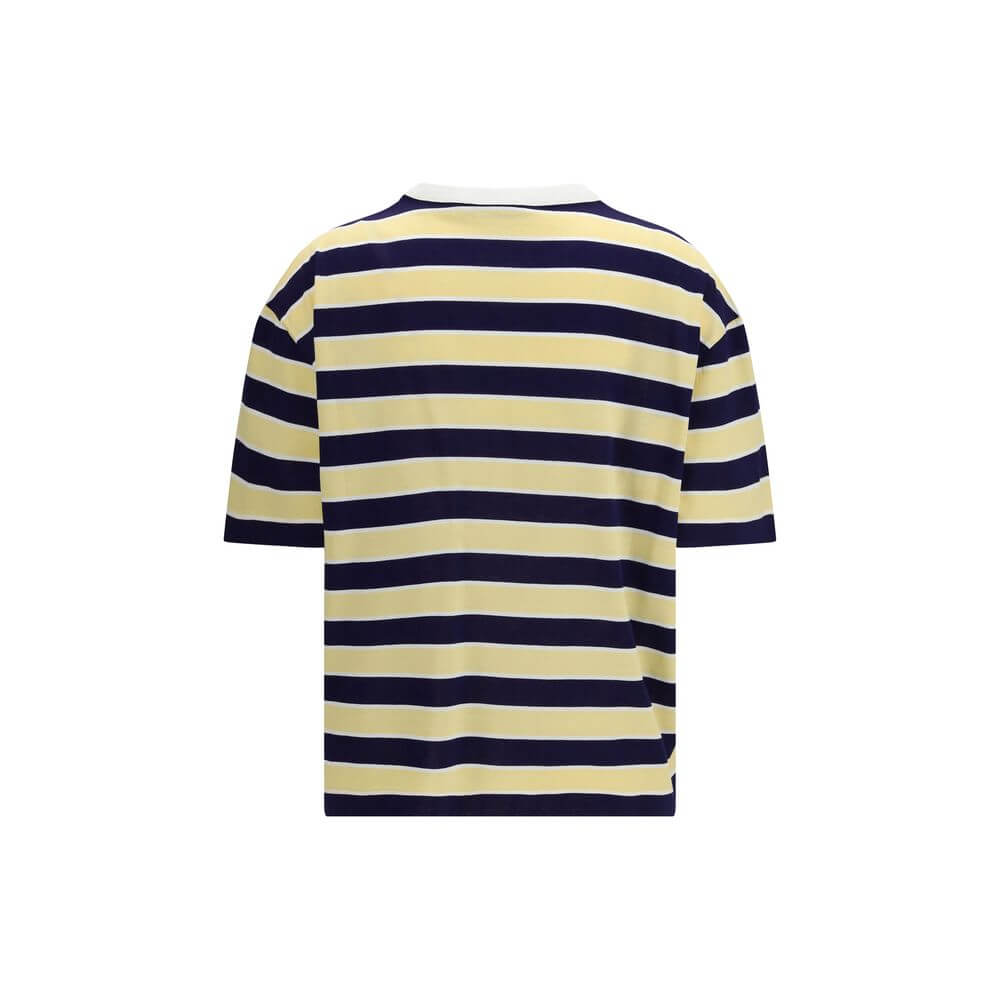 The striped filo di Scozia T-shirt by Prada features a clean design enhanced by distinctive graphic details. Designed with an oversized fit, it is finished with a contrast ribbed crew neckline, short sleeves, and a front patch pocket with a tailored logo label. A straight hem completes the modern silhouette, blending comfort with refined style.