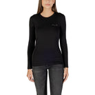 This women’s long-sleeve t-shirt by Armani Exchange, model XW001353 AF17173, is crafted from 95% cotton and 5% elastane, ensuring a comfortable and slightly stretchy fit that flatters the silhouette. The minimalist design is enhanced by a subtle logo on the chest, adding a touch of contemporary elegance. Perfect for a versatile and casual look, this shirt pairs easily with both jeans and more formal trousers, making it ideal for any occasion throughout the day.