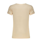 Indulge in the epitome of casual chic with this GUESS JEANS short-sleeved T-shirt. Designed to accentuate your fashion-forward lifestyle, it features a flattering wide neck and a bold applique logo that effortlessly captures attention. Crafted from a premium blend of 95% organic cotton and 5% spandex, this top promises both sustainable comfort and an adaptable fit. Whether it’s a casual day out or a laid-back evening, exude confidence in this striking rosa piece. Let this GUESS JEANS creation be your go-to style statement.