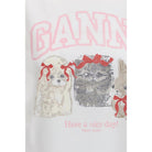 The Animals Print T-shirt By Ganni turns a simple classic into a playful, expressive staple. The clean round neckline and short sleeves keep the silhouette effortless, while the animal print graphic adds a lively, spirited touch. The message “Have a nice day! Please recycle” brings warmth and intention, complemented by the signature GANNI logo that seals the piece with modern ease. A tee that blends simplicity with personality.