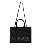 Black Top Handle Canvas Leather Logo Crossbody Tote Bag