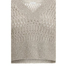 The Dazzling Braids linen Sweater by Brunello Cucinelli showcases natural elegance through a refined cable-knit texture. Designed with a ribbed V-neckline, dropped shoulders, and ribbed cuffs and hem, it offers a relaxed yet sophisticated silhouette, balancing comfort and craftsmanship.