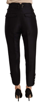 Black Button Embellished Cropped High Waist Pants