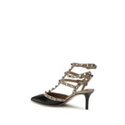 The Rockstud Pump by Valentino Garavani embodies confident elegance through its sleek pointed toe and slender ankle straps adorned with the iconic contrast studs. Crafted from smooth calfskin leather, it features an adjustable closure, a leather sole, and a mid-height stiletto heel that elevates the silhouette with effortless refinement.