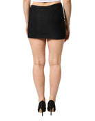mini skirt features a pencil-cut silhouette crafted from soft black cotton. The high waist creates a flattering fit, combining classic elegance with modern sophistication for versatile styling.