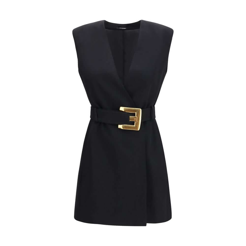 The short wrap Dress by Balmain is a sophisticated piece made from grain de poudre fabric that exudes elegance and modernity. The V-neckline and sleeveless design give it a feminine and sensual look, while the double-breasted closure with belt and Anthem buckle at the waist define the silhouette with a distinctive touch. The fitted cut enhances the figure, making this dress perfect for special occasions or elegant evenings.
