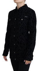 Black Leopard Long Sleeve Denim Cotton Jacket
