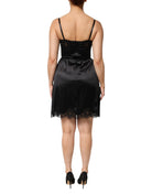 Black Silk Blend Lace Trim Sleeveless Mini Dress