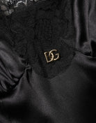 Gorgeous brand new with tags, 100% Authentic Dolce & Gabbana black mini dress. Crafted from a luxurious silk blend, this elegant piece features delicate lace trim at the neckline and hemline, a bust fitted with DG logo detail, and thin adjustable straps. Perfect for evening wear or special occasions.