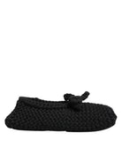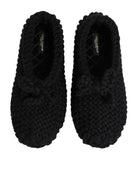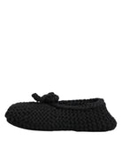 Black Wool Knit Slip On Ballerina Flats Shoes